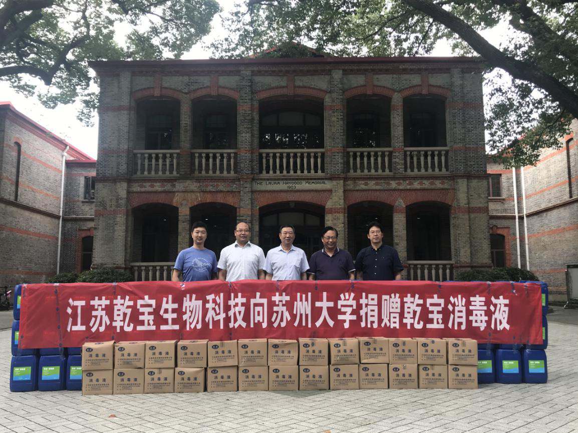 助力高校疫情防控 江蘇乾寶生物科技向蘇州大學捐贈5噸消毒液