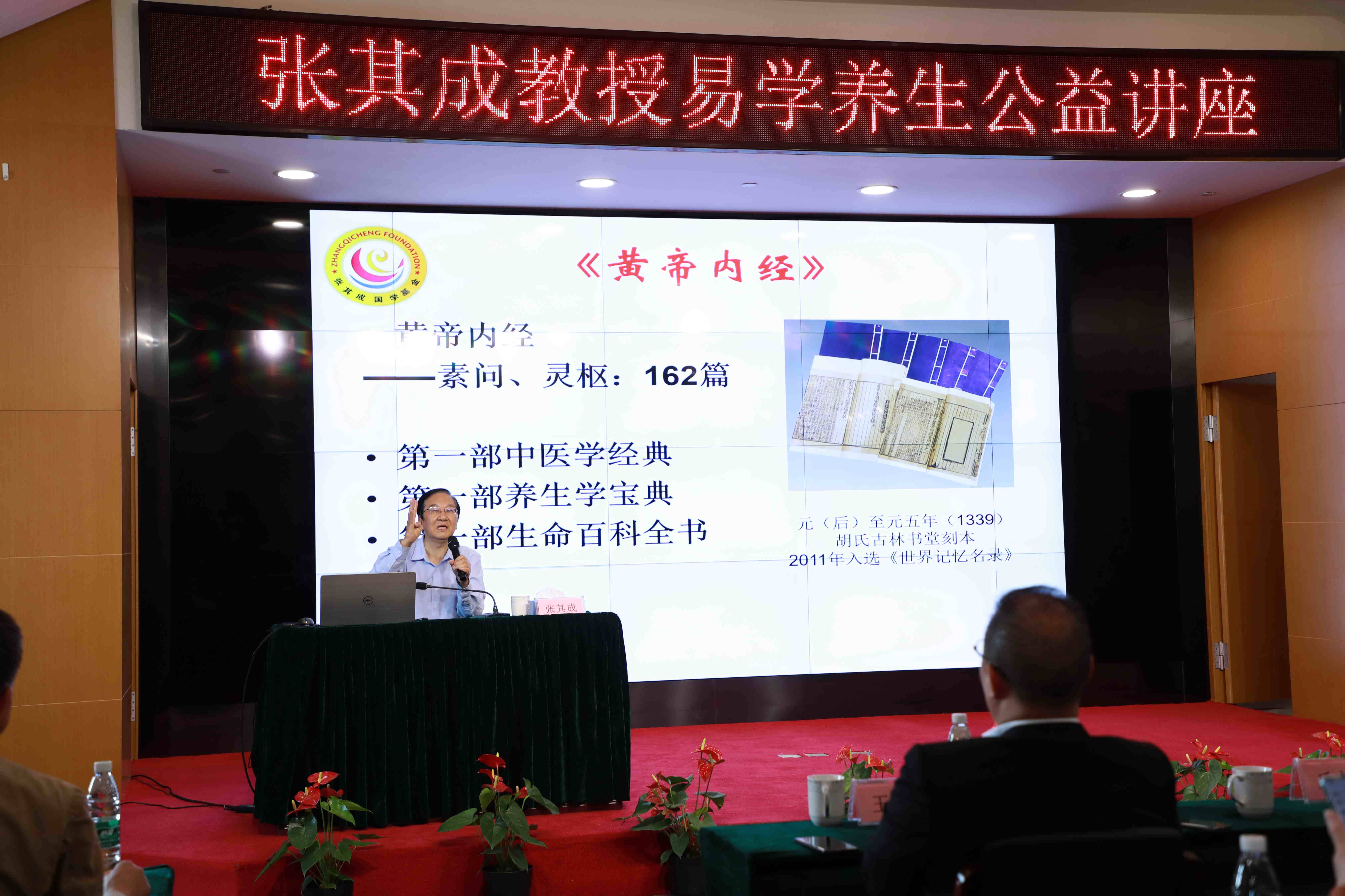 本次講座,張其成教授圍繞“黃帝內(nèi)經(jīng)養(yǎng)生智慧”主題,從哲學(xué)、醫(yī)學(xué)、養(yǎng)生三維度,結(jié)合“國(guó)學(xué)五經(jīng)”,從中華國(guó)學(xué)養(yǎng)生文化源頭出發(fā),用通俗易懂和詼諧生動(dòng)的語(yǔ)言,講解了《黃帝內(nèi)經(jīng)》中蘊(yùn)含的養(yǎng)生智慧和處世哲學(xué)。張教授詳解了國(guó)學(xué)陰陽(yáng)五行與脈象經(jīng)絡(luò)等中醫(yī)思想,“陰陽(yáng)中和”的養(yǎng)生智慧與易學(xué)“陰陽(yáng)協(xié)調(diào)”的核心思想一脈傳承。精彩解讀了“法于陰陽(yáng),和于術(shù)數(shù)”的健康養(yǎng)生總原則,主張養(yǎng)生重在精氣神,以及食飲有節(jié)、起居有常、不妄作勞、形與神俱等養(yǎng)生之道?!饵S帝內(nèi)經(jīng)》作為一部系統(tǒng)的養(yǎng)生學(xué)寶典,其強(qiáng)調(diào)的陰陽(yáng)調(diào)和方能百病不擾的健康養(yǎng)生精髓,聽(tīng)眾受益匪淺。張其成教授還現(xiàn)場(chǎng)傳授了自創(chuàng)的具有強(qiáng)健體質(zhì)、修身養(yǎng)性功效的“易道功”,并與現(xiàn)場(chǎng)觀眾進(jìn)行熱情互動(dòng),充分調(diào)動(dòng)了大家的學(xué)習(xí)熱情。