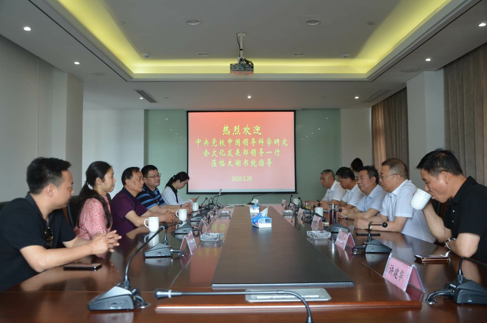 2020年5月28日上午,中央黨校中國領(lǐng)導(dǎo)科學(xué)研究會文化發(fā)展部主任汪國語、企業(yè)家楊修雨、李軍、李永貴等一行蒞臨太湖書院參觀考察。太湖書院理事長王躍程、副理事長朱波、執(zhí)行院長王建明、副院長許建華、秘書長王翼寧和天堂美景觀綠化公司總經(jīng)理馬向農(nóng)等人熱情接待。