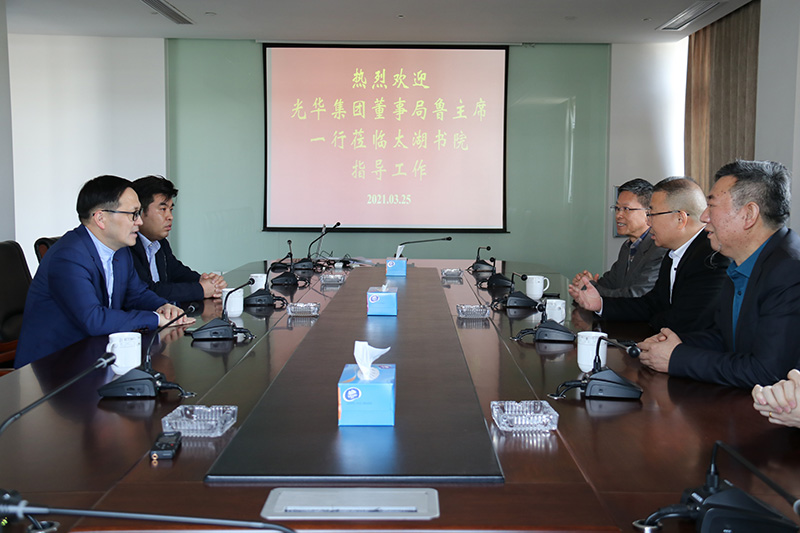 3月25日,光華教育集團董事局主席魯育宗一行到訪太湖書院考察交流,江蘇乾寶科技發(fā)展集團董事長、太湖書院理事長王躍程,集團執(zhí)行總裁、書院秘書長王翼寧,書院執(zhí)行院長王建明,集團副總裁魏峰等人熱情接待。