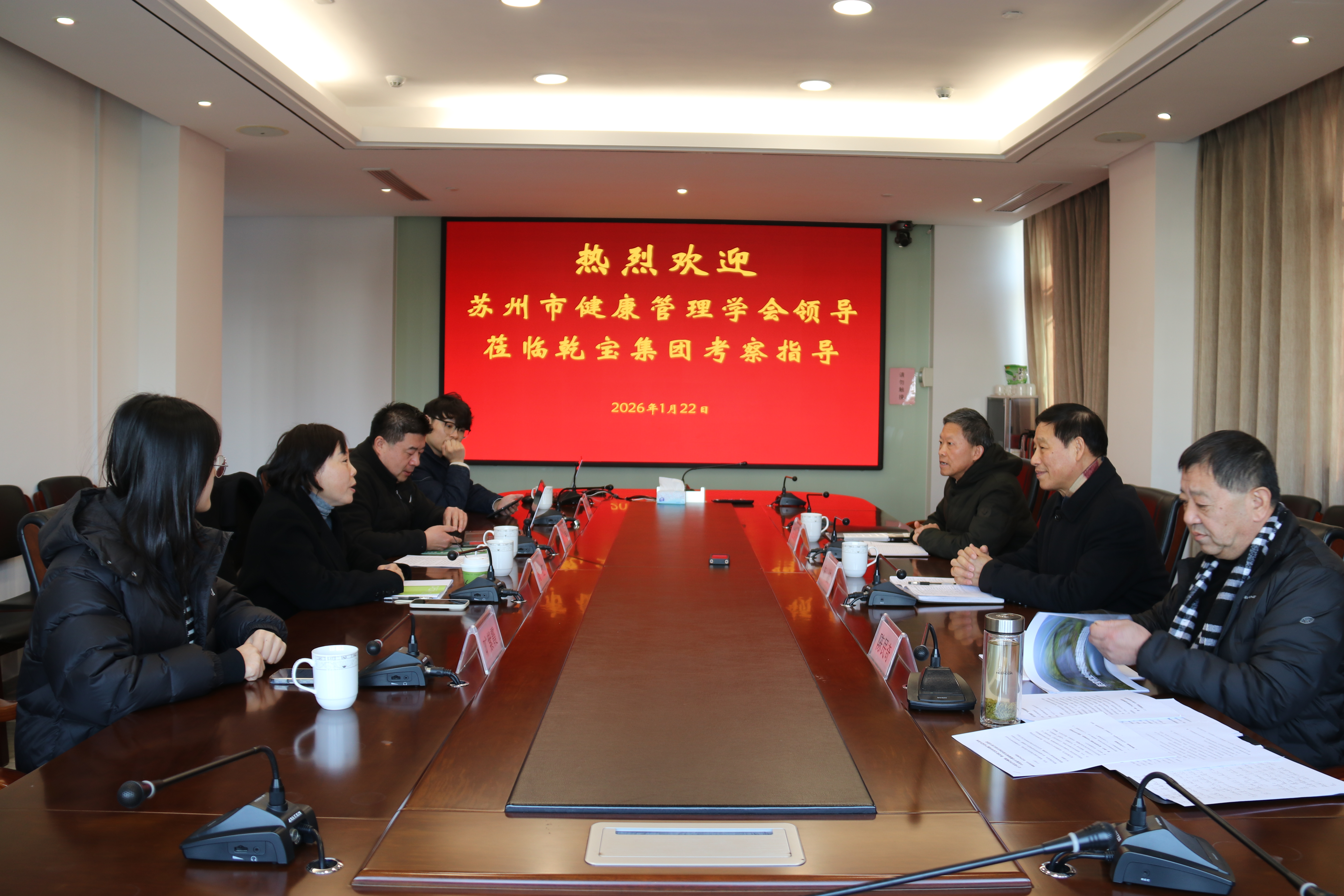 近日,為進(jìn)一步加強(qiáng)與會(huì)員單位的溝通和聯(lián)絡(luò),高效響應(yīng)合作訴求,賦能會(huì)員單位更好融入學(xué)會(huì)平臺(tái)、整合行業(yè)資源,蘇州市健康管理學(xué)會(huì)執(zhí)行副會(huì)長(zhǎng)周紅率領(lǐng)學(xué)會(huì)副秘書長(zhǎng)張宇,秘書處一行,專程走訪學(xué)會(huì)新發(fā)展的理事單位——江蘇乾寶科技發(fā)展集團(tuán)(簡(jiǎn)稱乾寶集團(tuán))。乾寶集團(tuán)總裁朱波、集團(tuán)總顧問兼太湖書院副院長(zhǎng)陳民奇、蘇州太湖書院執(zhí)行院長(zhǎng)王建明等接待并座談。