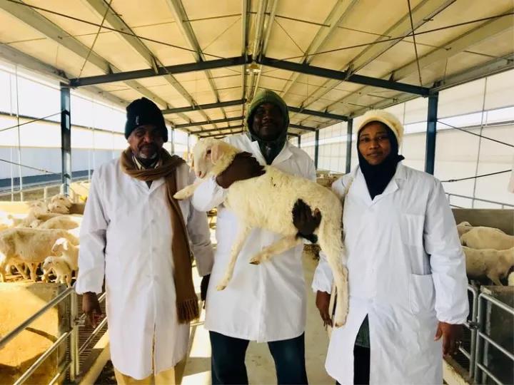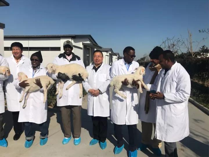 蘇丹共和國的大學(xué)教授們對乾寶牧業(yè)養(yǎng)殖的湖羊非常親切,非常激動,并提出抱著照相留念。