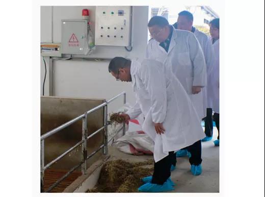 王俊勛副司長(zhǎng)一行等領(lǐng)導(dǎo)詳細(xì)了解乾寶牧業(yè)湖羊飼料加工、配送情況