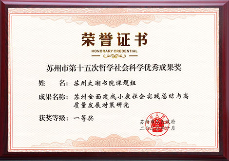 蘇州市第十五次哲學(xué)社會(huì)科學(xué)優(yōu)秀成果獎(jiǎng)一等獎(jiǎng)