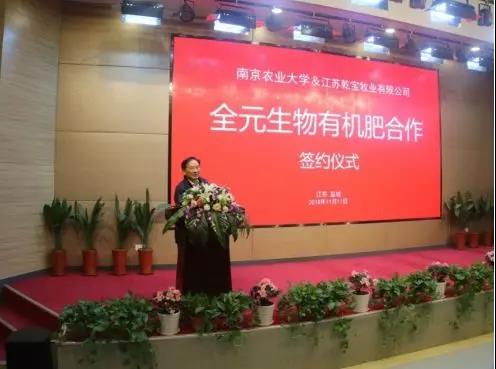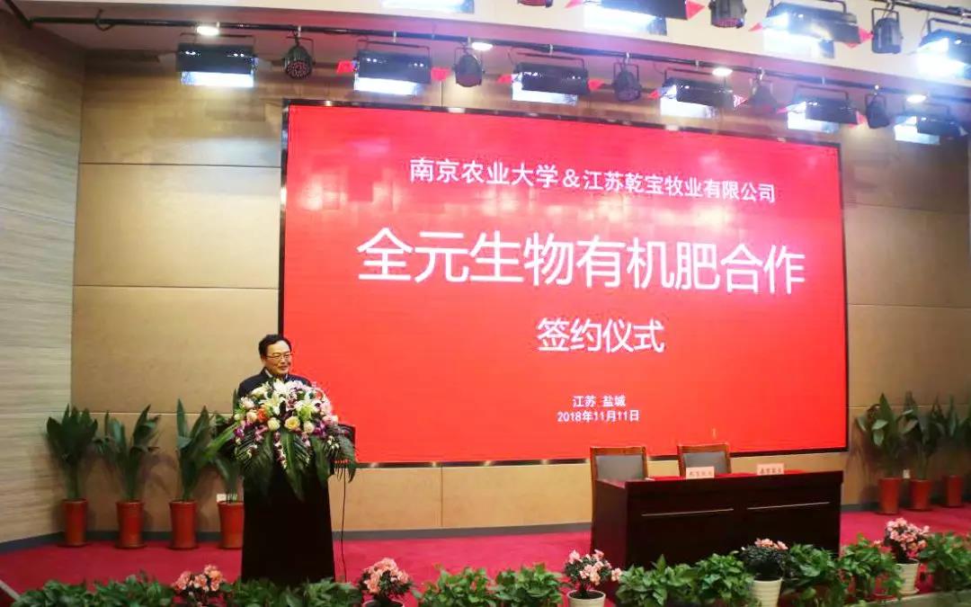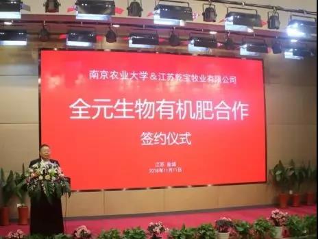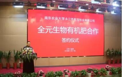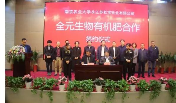 ? ? ? ?2018年11月11日,南京農(nóng)業(yè)大學(xué)、江蘇乾寶牧業(yè)“全元生物有機(jī)肥技術(shù)合作簽約儀式”在乾寶湖羊產(chǎn)業(yè)基地隆重舉行!