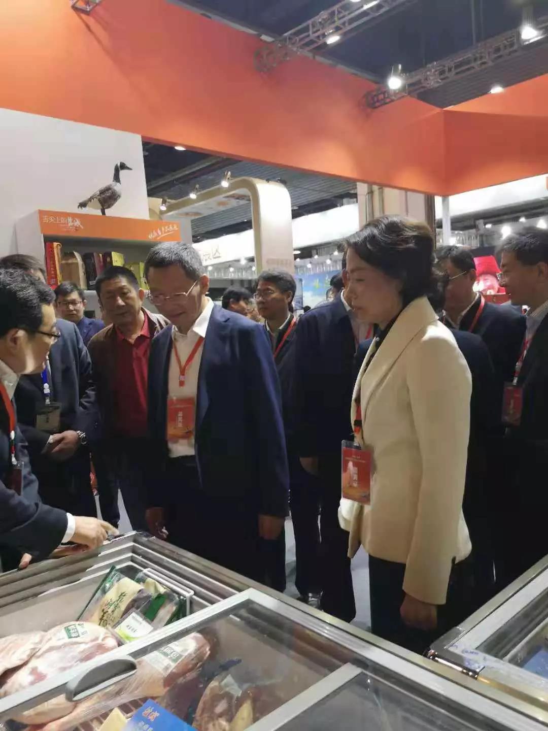 市委書記戴源、市農(nóng)委主任施建霞觀看乾寶湖羊系列品牌產(chǎn)品