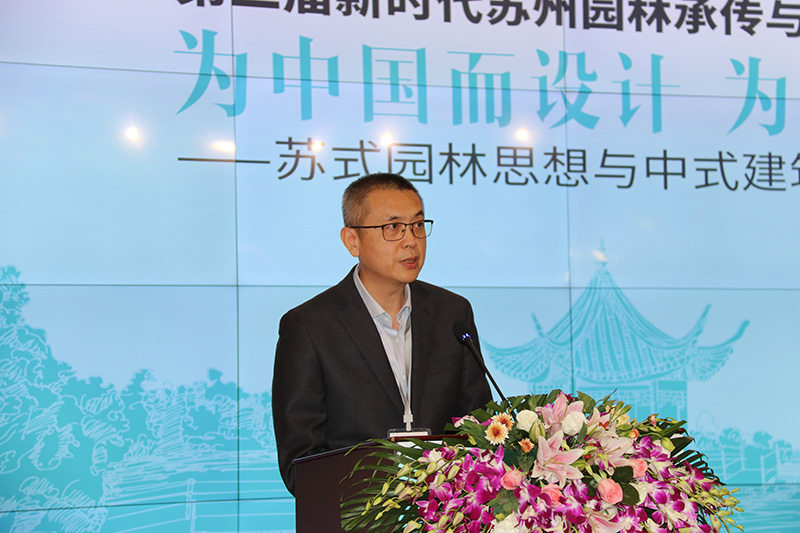 蘇州市人民政府副秘書長張焱致歡迎辭,希望各位專家學(xué)者暢所欲言,集思廣益,在第一屆研討會取得豐碩成果的基礎(chǔ)上,為新時(shí)代蘇州園林的發(fā)展、蘇州園林名片的打造再添助力。