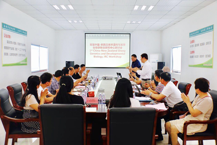 2017年6月8日新西蘭梅西大學(xué)動物與生物醫(yī)學(xué)院前院長Hugh Blair休/布萊爾,現(xiàn)院長Paul Kenyon 鮑爾/肯因,石河子大學(xué)研究生院院長高劍鋒、新疆畜牧科學(xué)院(農(nóng)業(yè)部)綿羊研究中心主任劉明軍、河北農(nóng)業(yè)大學(xué)畜牧學(xué)院教授田樹軍、鹽城市科技局副局長石春山、鹽城市畜牧獸醫(yī)站站長、推廣研究員楊 凌、鹽城市亭湖區(qū)農(nóng)業(yè)委員會副主任李亞非、乾寶集團(tuán)董事長王躍程、乾寶產(chǎn)業(yè)園總裁王榮華、乾寶產(chǎn)業(yè)園總經(jīng)理束海平以及乾寶產(chǎn)業(yè)園領(lǐng)導(dǎo)成員在乾寶牧業(yè)舉行第一屆中國—新西蘭綿羊遺傳與發(fā)育生物學(xué)研討會。