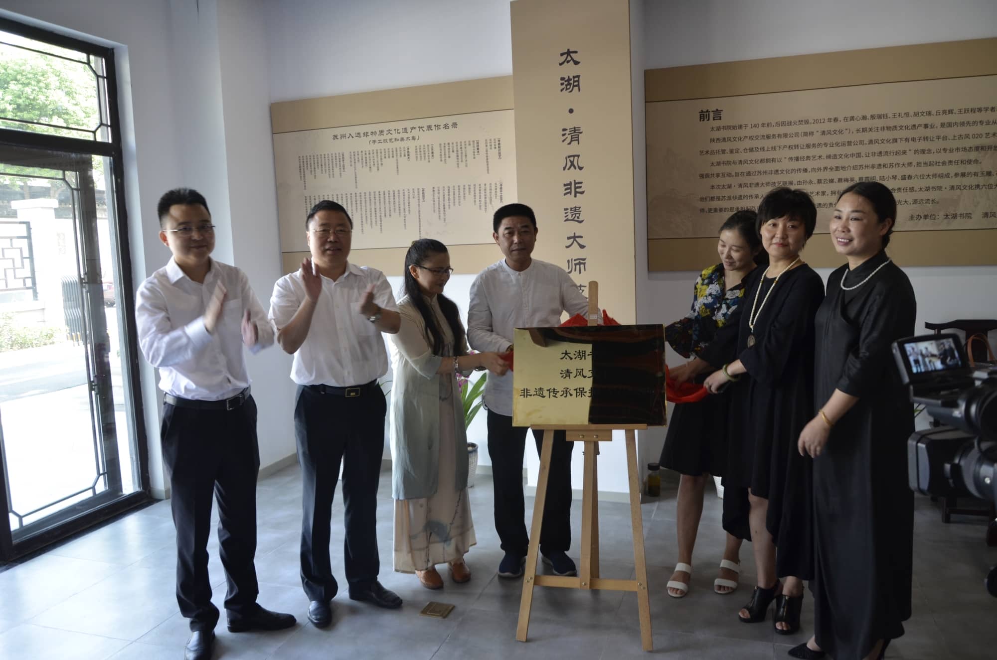 ?????? 2017年9月18日上午10點(diǎn),太湖書(shū)院攜手清風(fēng)文化舉辦了非遺精品展覽,拉開(kāi)了太湖·清風(fēng)與眾多非遺大師合作的序幕。江蘇乾寶投資集團(tuán)副董事長(zhǎng)朱波主持了揭幕儀式。參加此次非遺精品展的大師有蔡云娣,蔡梅英,蔡霞明,陸小琴,盛春,孫永等。嘉賓有江蘇乾寶投資集團(tuán)董事長(zhǎng)王躍程,陜西清風(fēng)文化產(chǎn)權(quán)交流服務(wù)有限公司總經(jīng)理李寶庫(kù),太湖書(shū)院執(zhí)行院長(zhǎng)沈陽(yáng),江蘇乾寶投資集團(tuán)執(zhí)行總裁王翼寧、常務(wù)總裁王榮華,今日頭條、蘇州區(qū)房產(chǎn)運(yùn)營(yíng)總經(jīng)理張會(huì)來(lái),江蘇乾寶投資集團(tuán)副總裁徐正強(qiáng),太湖書(shū)院副院長(zhǎng)丘東,陜西清風(fēng)文化產(chǎn)權(quán)交流服務(wù)有限公司、清風(fēng)非遺博物館館長(zhǎng)任元鴻,蘇州大學(xué)教授費(fèi)湘軍,陜西清風(fēng)文化產(chǎn)權(quán)交流服務(wù)有限公司產(chǎn)品總監(jiān)陸洋,陜西清風(fēng)文化產(chǎn)權(quán)交流服務(wù)有限公司市場(chǎng)總監(jiān)黃蕊卿,西安大唐古玩市場(chǎng)總經(jīng)理唐亮等出席了展覽活動(dòng)。太湖書(shū)院執(zhí)行院長(zhǎng)沈陽(yáng)、清風(fēng)文化非遺博物館館長(zhǎng)任元鴻、非遺傳承人代表蔡梅英老師先后發(fā)表熱情洋溢的致辭,都希望通過(guò)此次活動(dòng)弘揚(yáng)主族律,傳播正維量,齊心協(xié)力把中國(guó)傳統(tǒng)文化發(fā)揚(yáng)光大。儀式上,大師們?yōu)樘?shū)院·清風(fēng)文化非遺傳承保護(hù)合作基地揭牌,共同見(jiàn)證了乾寶文化與清風(fēng)文化戰(zhàn)略合作的簽約儀式,活動(dòng)取得了圓滿(mǎn)成功。
