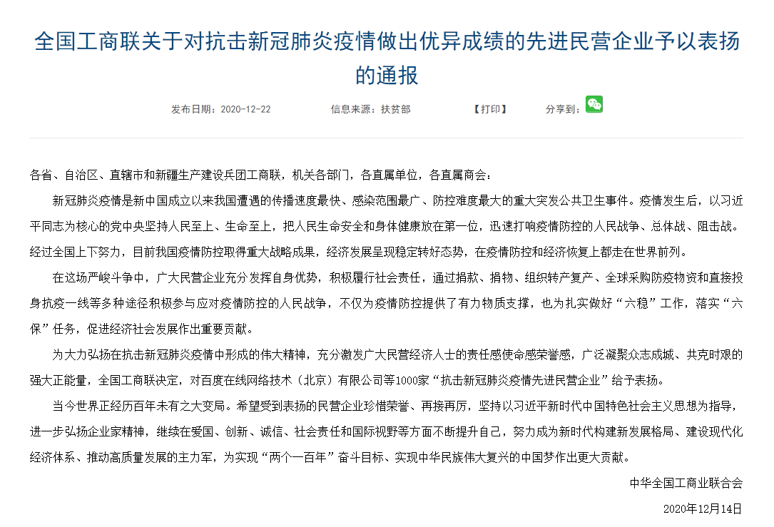 近期,中華全國工商業(yè)聯(lián)合會(huì)對(duì)抗擊新冠肺炎疫情做出優(yōu)異成績(jī)的先進(jìn)民營企業(yè)予以表揚(yáng),江蘇乾寶生物科技有限公司榮登榜單。