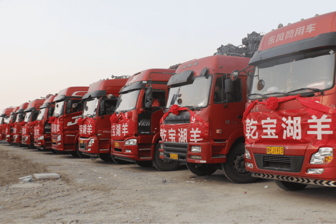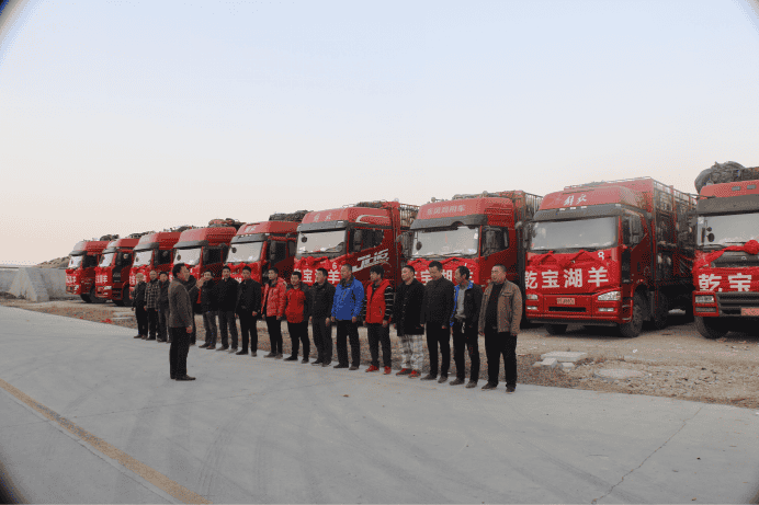 車隊(duì)整裝待發(fā),乾寶牧業(yè)副總經(jīng)理張道成有序指揮。