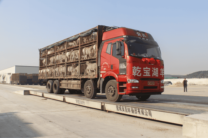 滿載湖羊的車隊(duì)排隊(duì)過磅