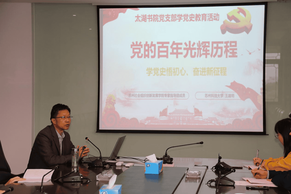 為深入學(xué)習(xí)*習(xí)*近*平*總書記在黨史學(xué)習(xí)教育動員大會上的講話精神,認真貫徹落實中央和省委、市委、以及市社會組織黨委關(guān)于黨史學(xué)習(xí)教育活動的實施方案,4月1日上午,太湖書院黨支部開展“黨的百年輝煌——學(xué)黨史,悟初心”學(xué)黨史專題教育活動,由黨史學(xué)習(xí)教育市委宣講團成員、蘇州科技大學(xué)馬克思主義學(xué)院教授王建明同志進行宣講,原黨支部書記丘亮輝、新一屆黨支部書記劉斌,以及支部黨員和入黨積極分子踴躍參加。