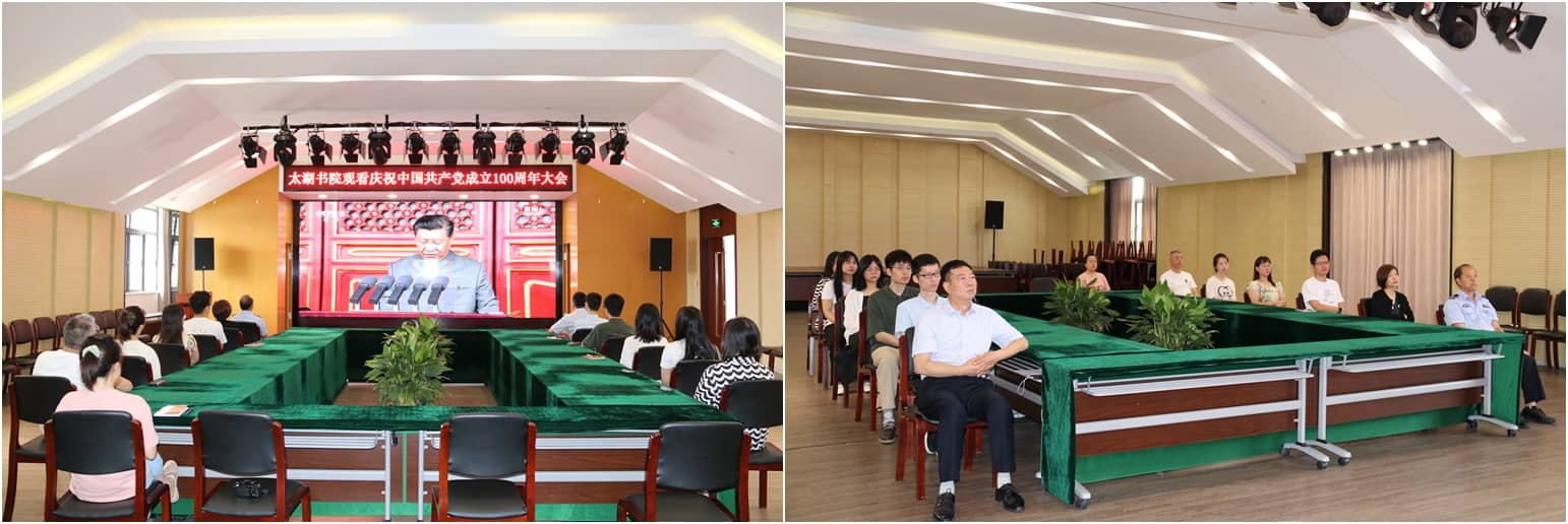 太湖書院黨支部積極組織支部黨員及入黨積極分子在太湖大講堂集中收看慶祝中國共產(chǎn)黨成立100周年大會直播,共同見證百年大黨的偉大盛典,喜慶中國共產(chǎn)黨建黨100周年。大家觀后紛紛表示,將銘記黨的百年輝煌歷程,始終牢記共產(chǎn)黨人的初心使命,繼往開來,昂揚奮進,以優(yōu)異的工作業(yè)績?yōu)閷崿F(xiàn)黨的第二個百年目標而努力奮斗。